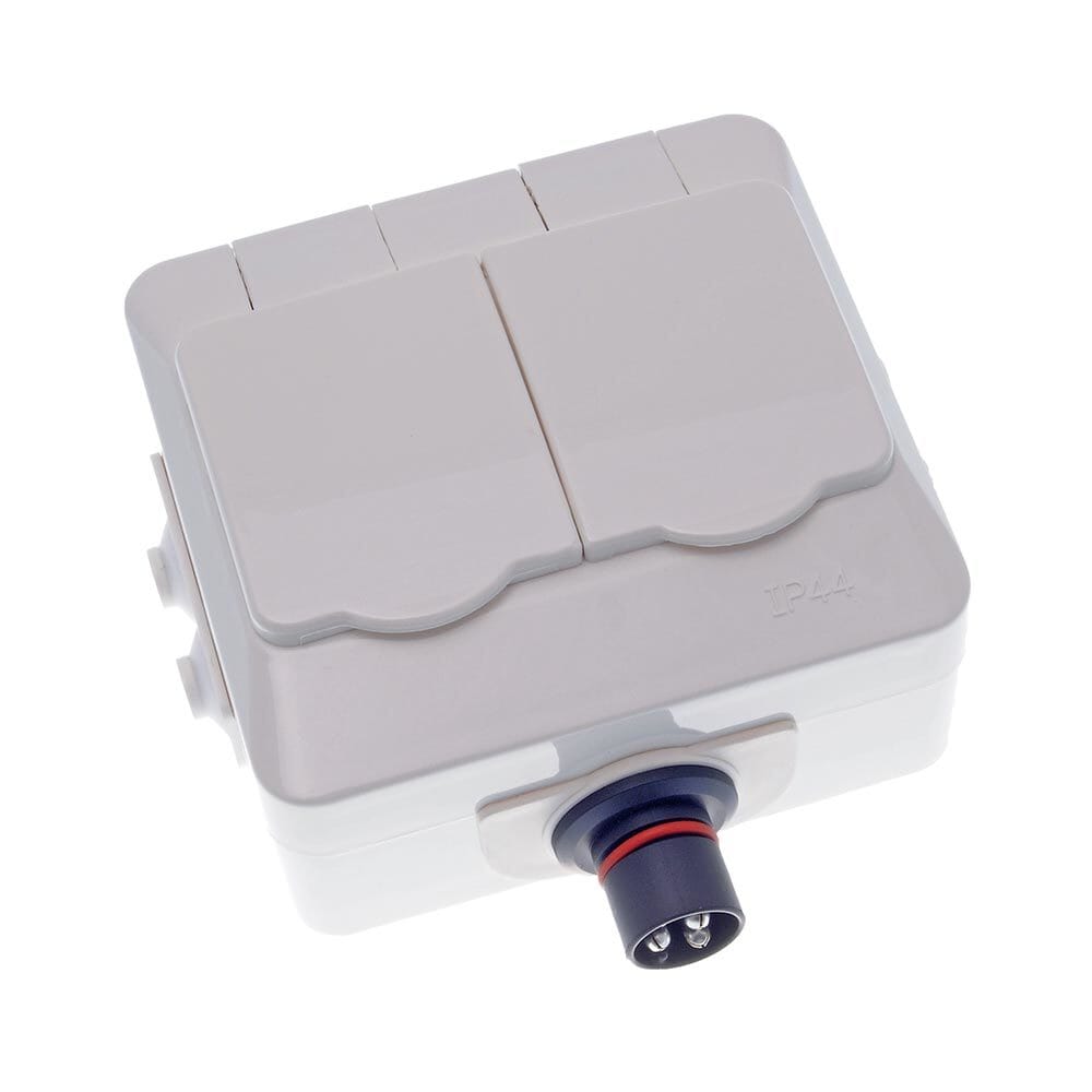 Defa-Strømuttak dobbel, påvegg med lokk - PlugIn inn/ut