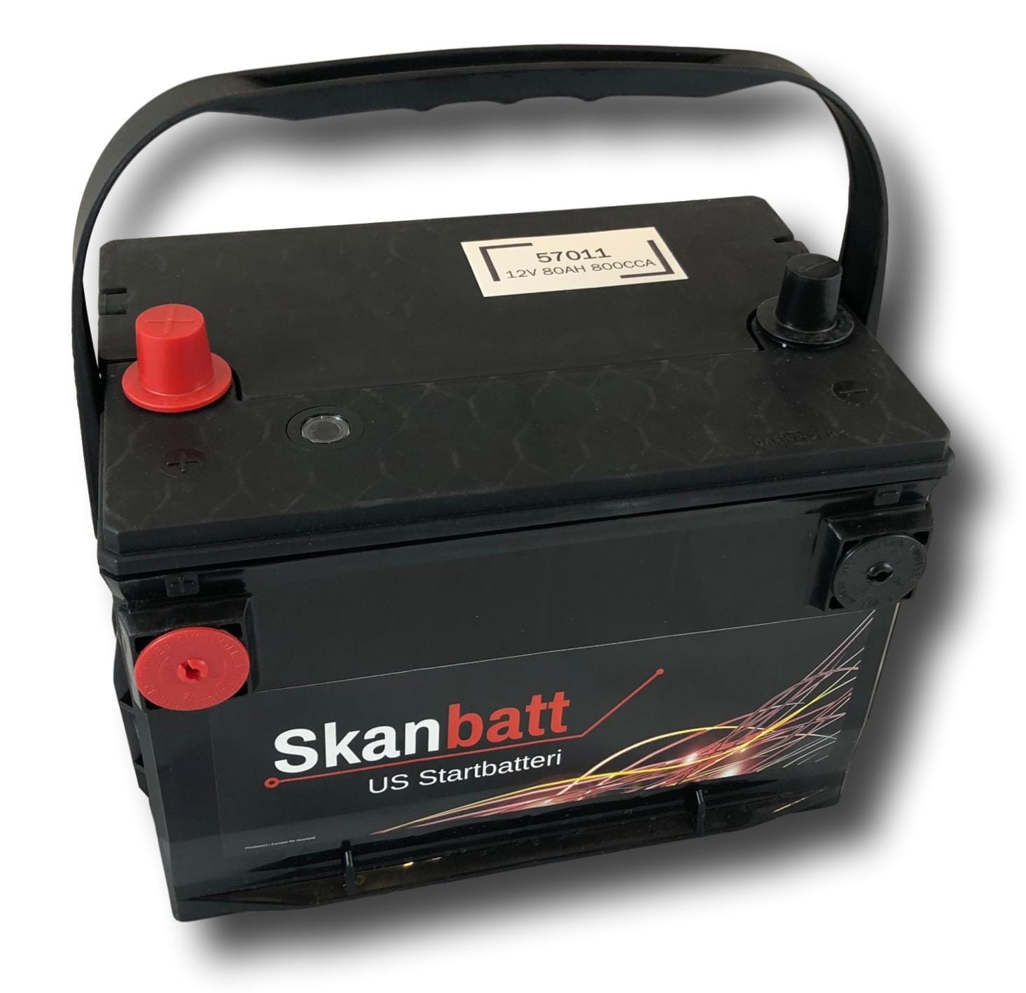 SKANBATT Bilbatteri 12V 80AH 800CCA USA260x179x180mm / sidepoler + topp polerSidepoler USA Gjenger 3/8 UNC+venstre / festelist B01