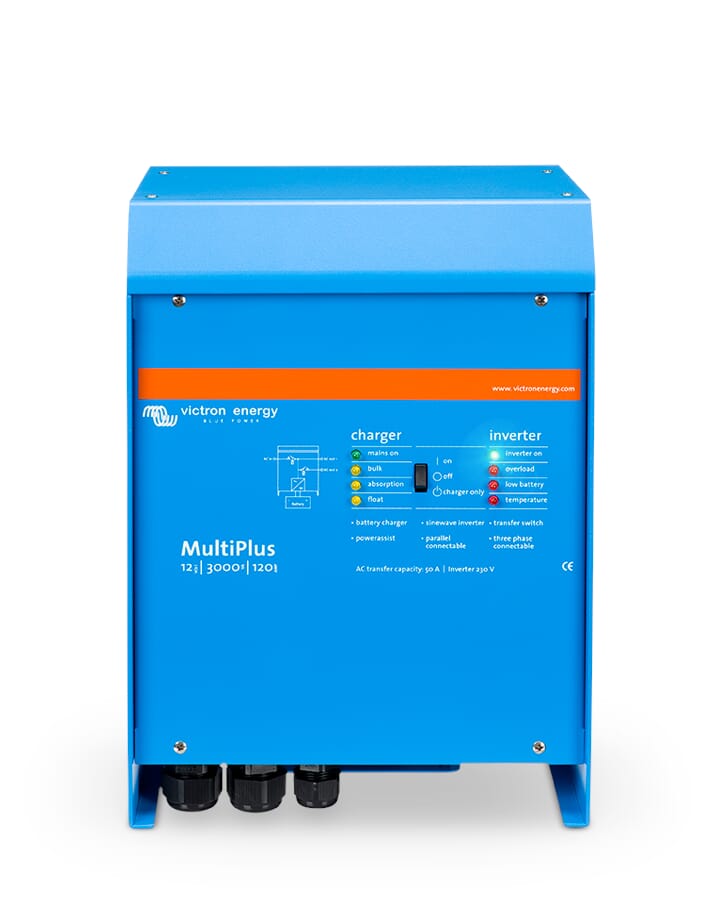 MultiPlus er en kraftfull ekte sinuskurve inverter, en avansert batterilader som har adaptiv ladeteknologi og høyhastighets AC overføring bryter i en enkel, kompakt kabinett.